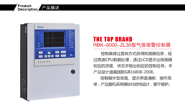 RBK-6000-ZL30氨气报警控制器,是一款功能实用、操作方便的氨气报警控制器, 可与我公司的RBT-6000-ZLG系列气体探测器配套组成工业用氨气报警系统。RBK-6000-ZL30氨气报警器采样两线制双绞线连接,安装布线方便,可最多连接30个氨气探测器,当空气中氨气浓度超过预警值时,RBK-6000-ZL30氨气报警器便会发出声光报警,以提醒用户采取安全措施,并驱动排风、切断、喷淋系统,防止发生爆炸、火灾、中毒事故,从而保障安全生产。RBK-6000-ZL30氨气报警器广泛应用于氨气报警器广泛应用于冷库、压缩机房、食品厂、化肥厂等行业,欢迎致电0531-89000101咨询。